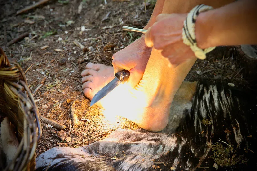 Je leert en leeft met oeroude vaardigheden: vuur maken, water zuiveren, looien, shelter bouwen, sporen lezen, voedsel verzamelen, navigatie, primitieve ambachten en veel meer.